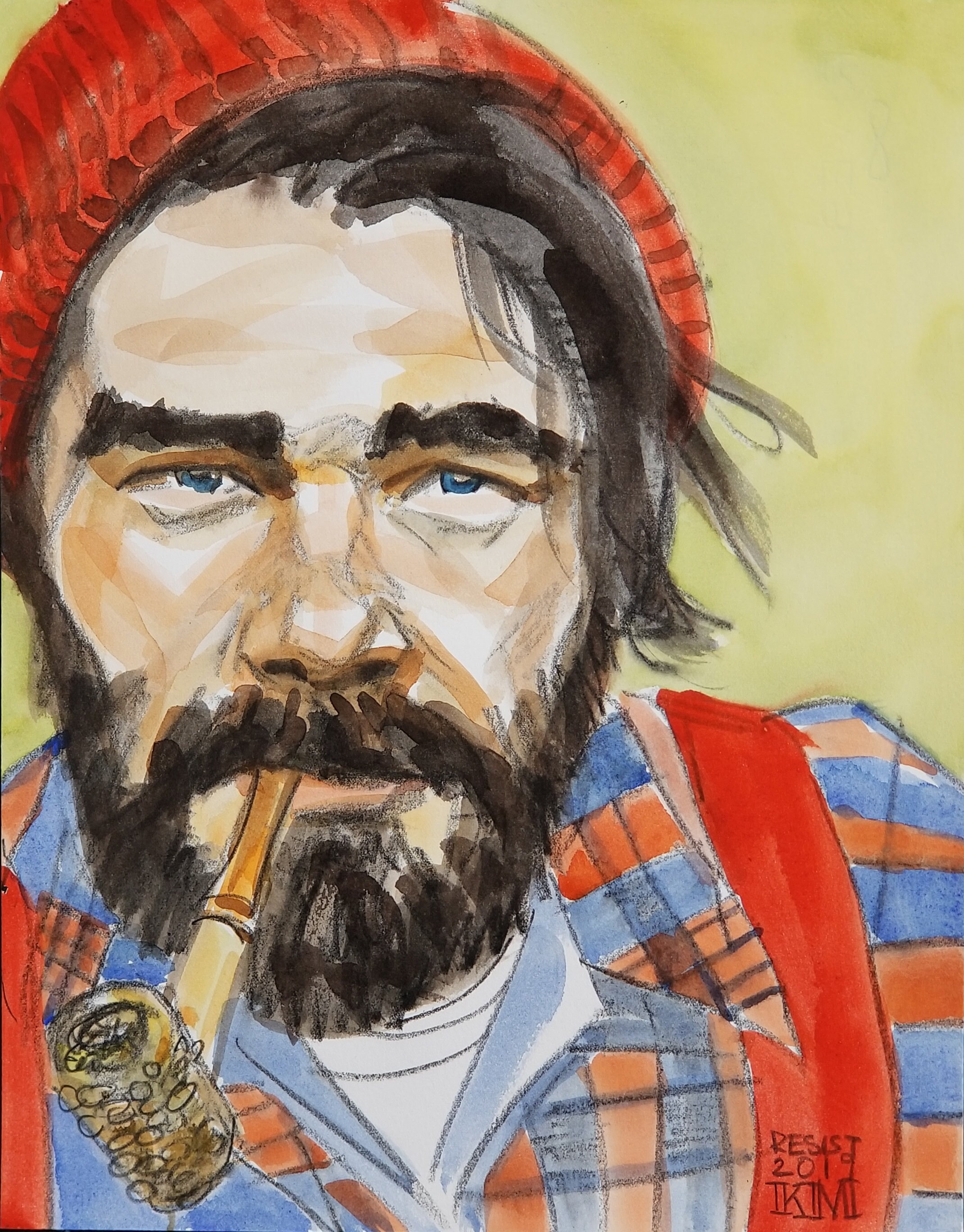 Lumbersexual, crayon and watercolor on Rives BFK paper, 11x14 inches by Kenney Mencher